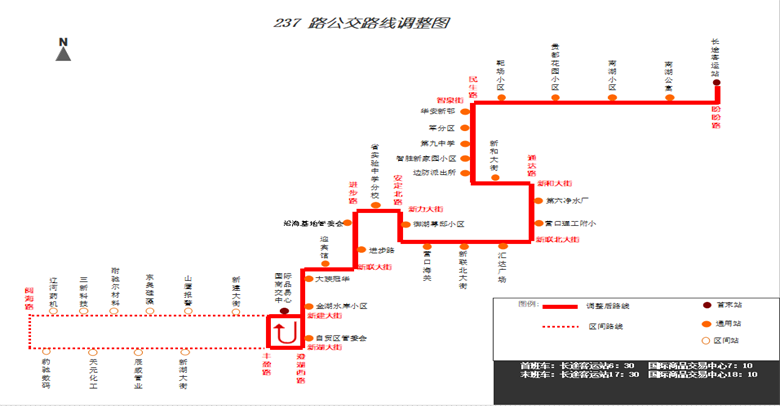“長途客運站”—原線—新和大街—通達(dá)路—新聯(lián)北大街—安定北路—原線—澄湖西路—新湖大街—豐盈路—新建大街—“國際商品交易中心”。